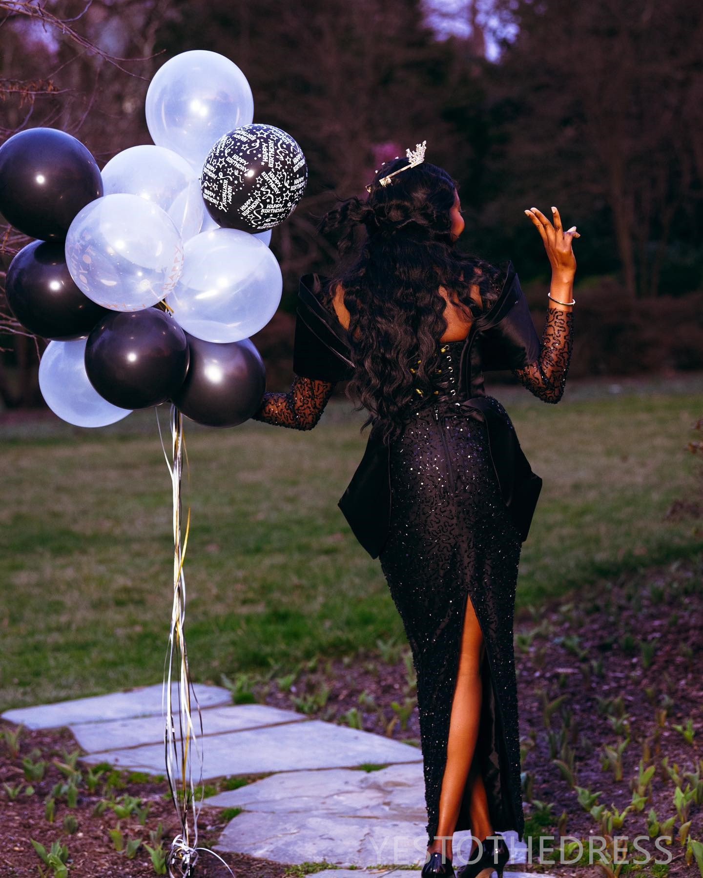 Black Prom Dresses For Special Occasions Evening Dresses Elegant Mermaid Promdress Sheer Neck Long Sleeves Beaded Lace Birthday Dress