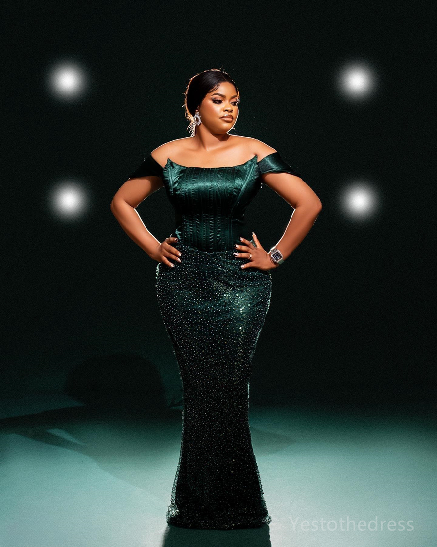 Green Prom Dresses for Special Occasions Promdress Off Shoulder Sequined Lace Evening Dresses Elegant Birthday Dress
