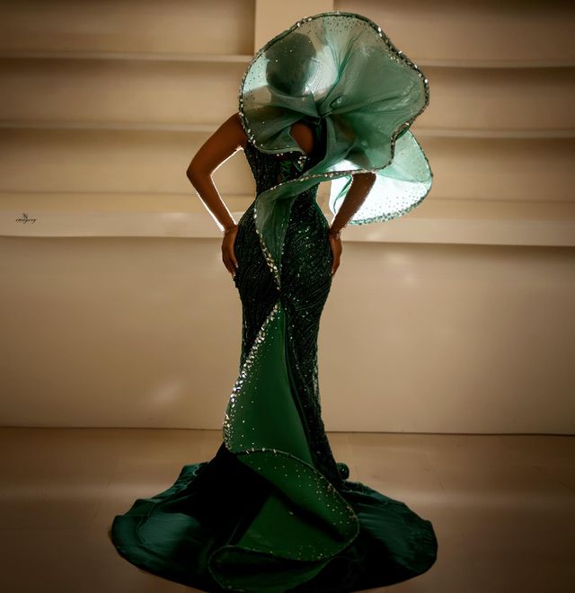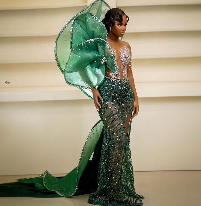 Green Mermaid Prom Dress Stylish Beaded Crystals Formal Party Evening Second Reception Birthday Engagement Bridesmaid Gowns Dresses