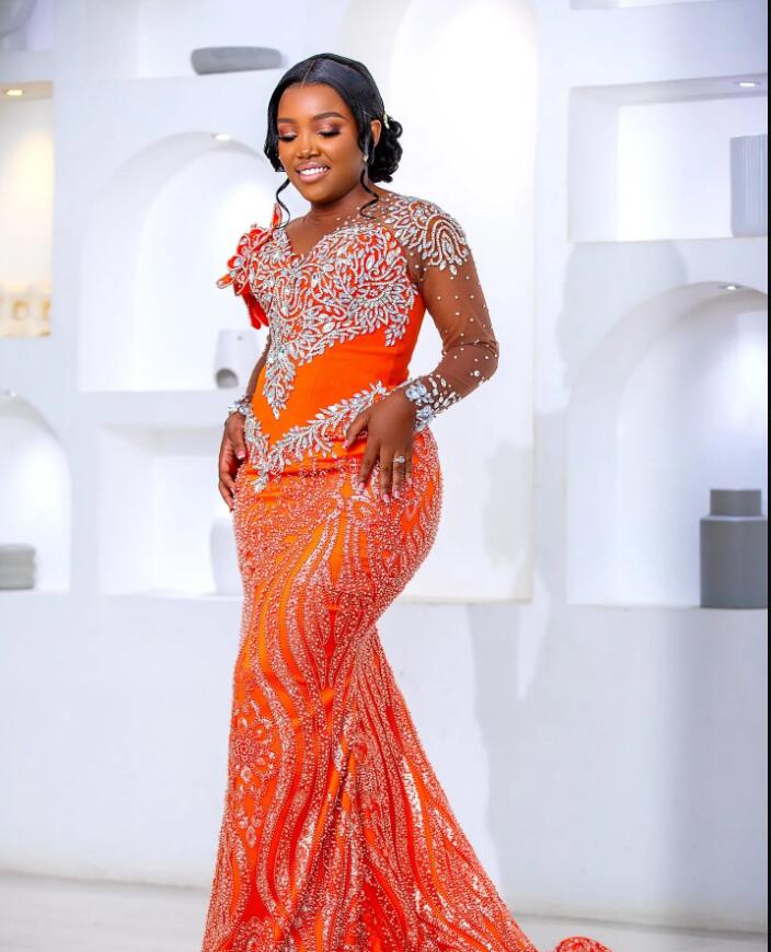 Orange Mermaid Prom Dresses 2025 Florals Rhinestones Sequined Lace Evening Formal Party Second Birthday Engagement Gowns Plus Size Dress
