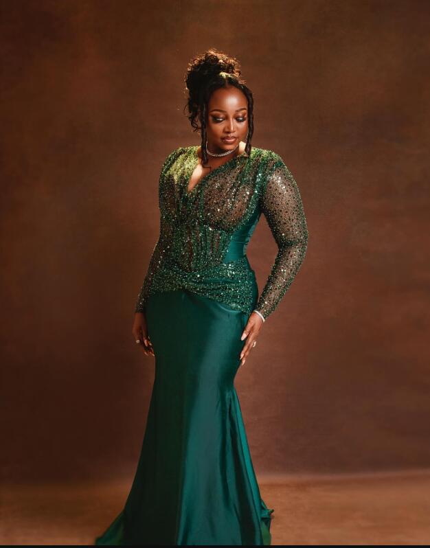 Plus Size Dark Green Mermaid Prom Dresses For Special Occasion Sequined Illusion Evening Formal Party Second Reception Birthday Dress