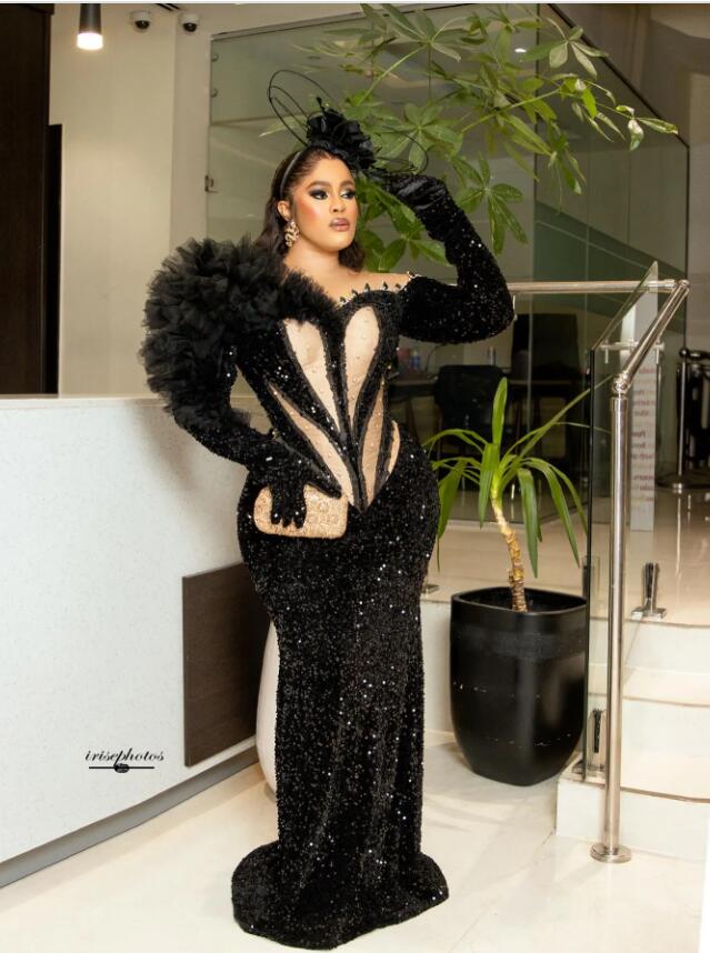 Plus Size Black Mermaid Prom Dresses For Special Occasion Sequined Crystals Evening Formal Party Second Reception Birthday Engagement Dress