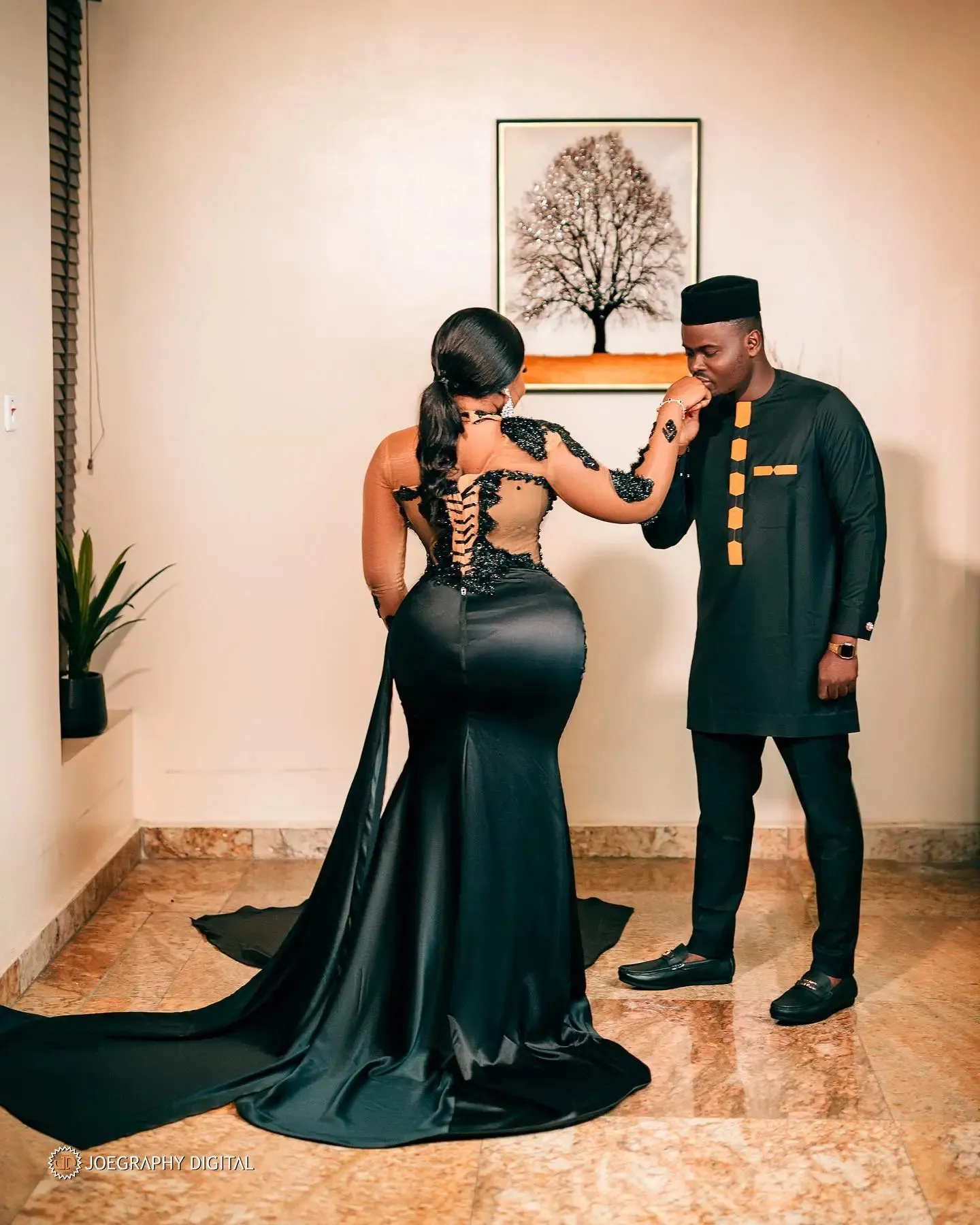 Plus Size Prom Dresses for Afrcian Women Illusion Evening Dresses Elegant Long Sleeves High Neck Appliqued Beaded Lace High Split Formal Dress
