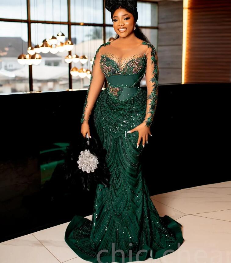 Plus Size Dark Green Mermaid Prom Dress Lace Beaded Crystals Evening Formal Party Second Reception 50th Birthday Engagement Dress