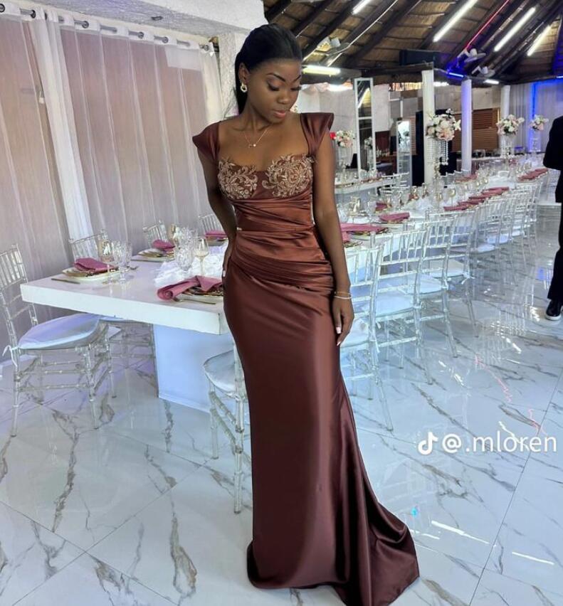 Brown Prom Dresses Appliques Evening Gowns African Girls Formal Party Occasion Gowns Custom