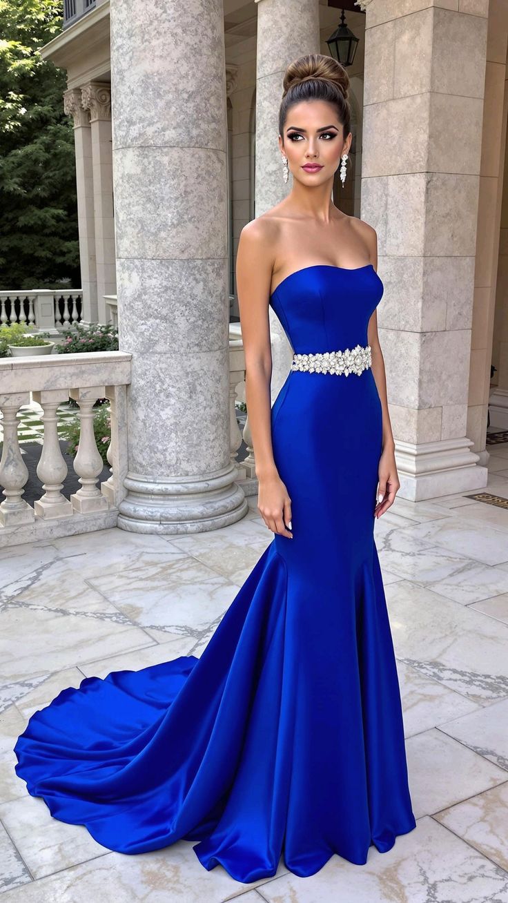 Royal Blue Mermaid Prom Dress Evening Formal Gown Satin Party Birthday Dress