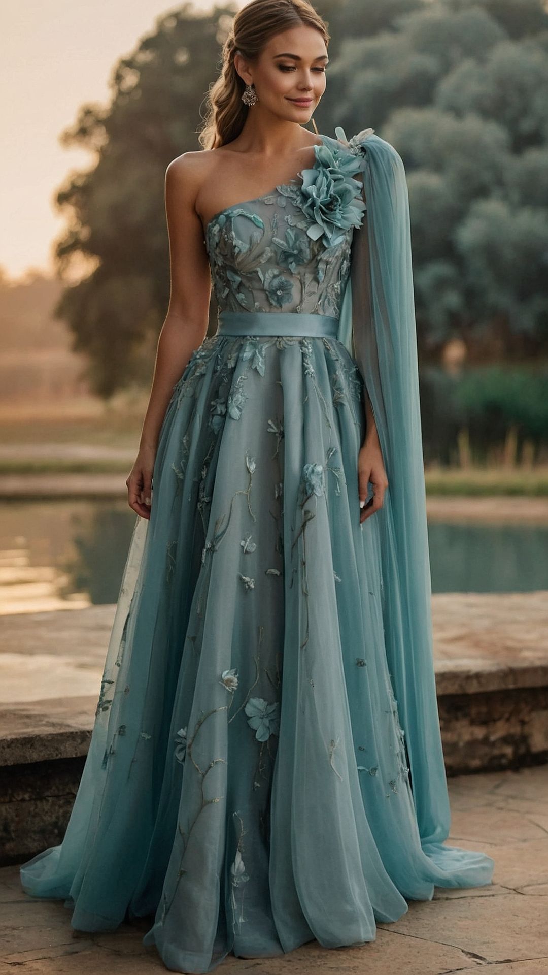 Blue Mermaid Prom Dresses Handmade Flowers Evening Gowns Formal Party Gowns