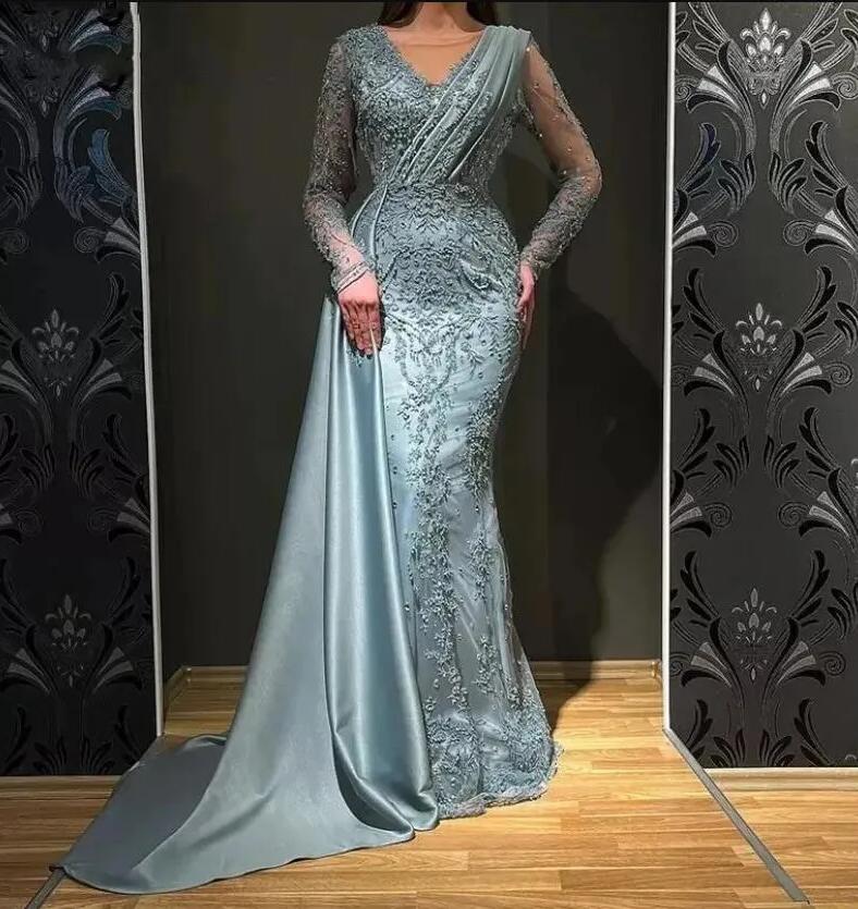 Green Sheath Prom Dresses Beading Crystals Evening Gowns Formal Party Gowns