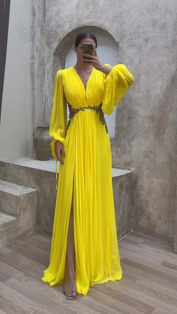 Yellow A Line Chiffon Prom Dresses Evening Gowns Formal Party Gowns