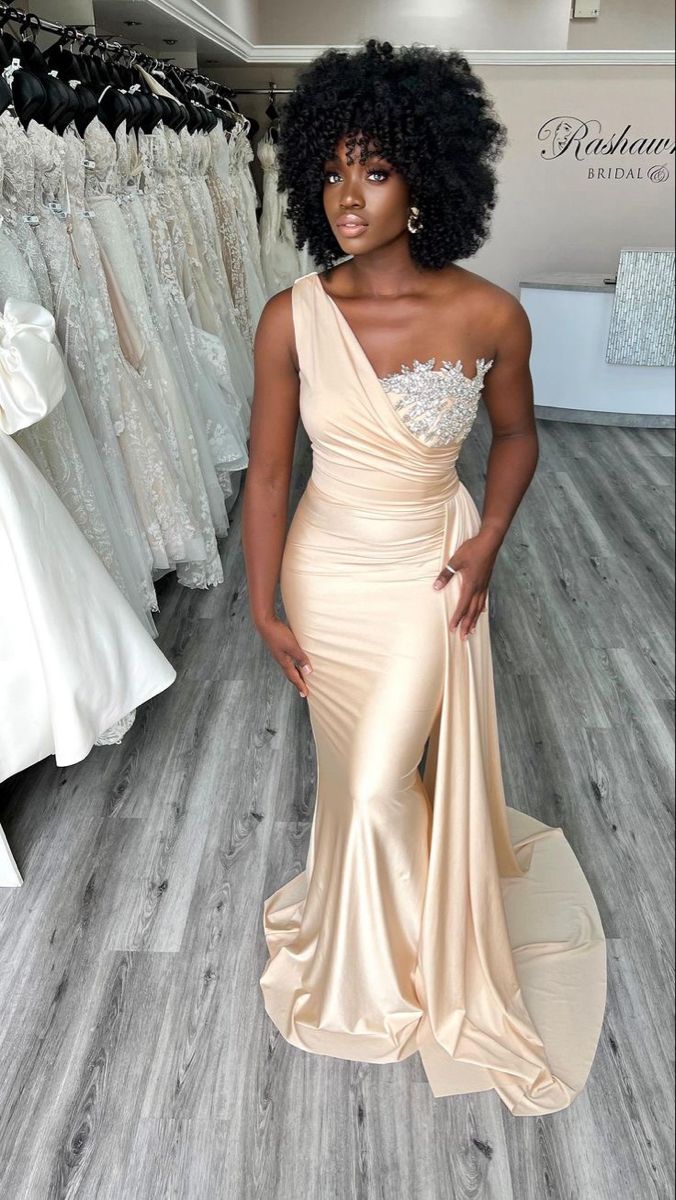 Light Champagne Mermaid Lace Prom Dresses Evening Gowns Formal Party Gowns