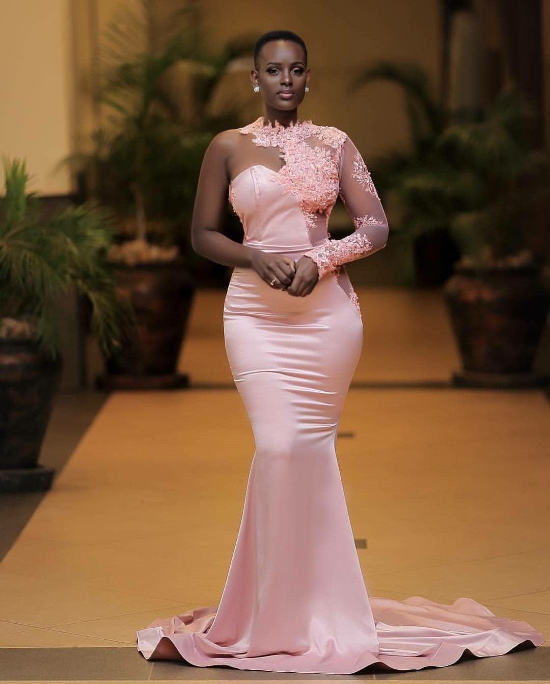 Pink Mermaid Lace Appliques Prom Dresses Evening Gowns Formal Party Gowns