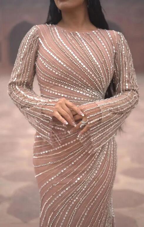 Saudi Arabia Luxury Long Sleeve Evening Dresses Beaded Mermaid Muslim Evening Party Dress Customized Dubai Prom Dresses