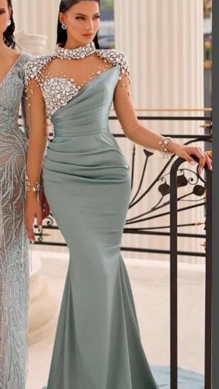 Blue Mermaid Beading Crystals Prom Dress Evening Formal Gown