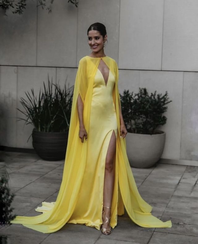 Yellow Mermaid Prom Dress with Shawl Evening Formal Dress Birthday Party Gown