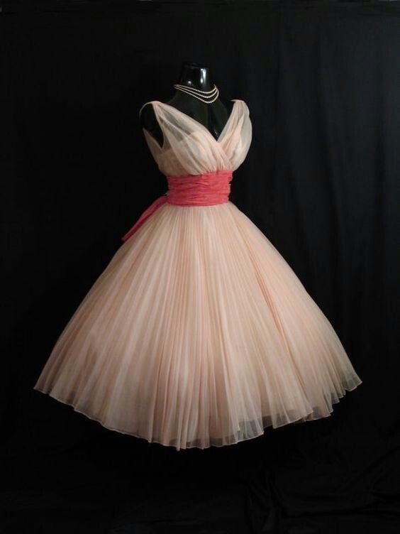 1950S Vintage Pink Prom Dress Evening Formal Gown Brithday Party Dress