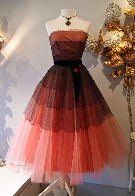 1950s Vintage Tulle Prom Dress Evening Formal Gown Brithday Party Dress