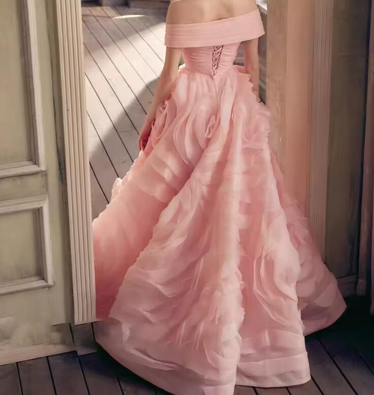 Customized High Quality Organza A-Line Flowers Evening Dress Temperament Lace Up Back Floor Length vestidos para mujer