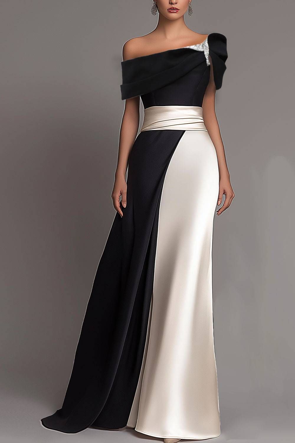 Black and White Mermaid Prom Dress Evening Formal Gown