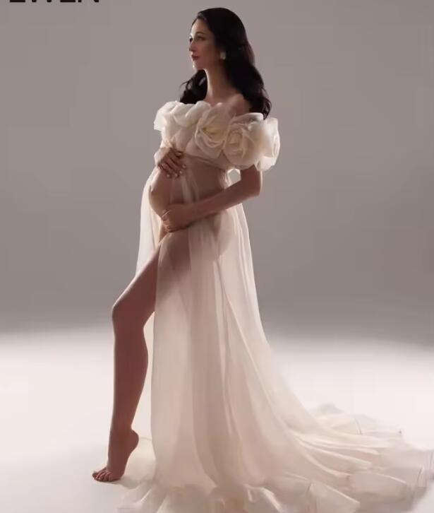 Handmade 3D Flower Pregnancy Photoshoot Dress Gala Organza Sheer Baby Shower Dress for Pregnant Woman Wedding Dresses