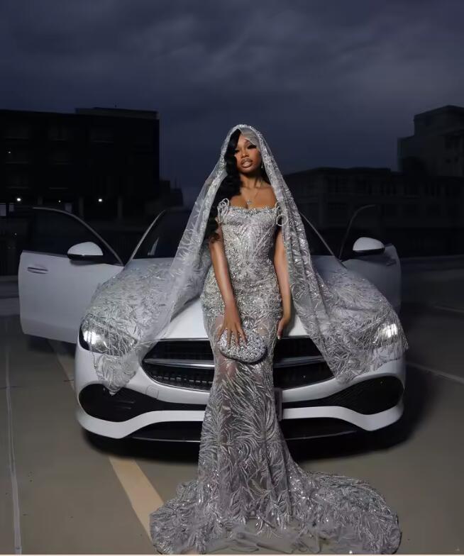 Sparkly Sequin Long Mermaid Prom Dresses Afrcian Girls Luxury Beading Evening Gowns For Birtyday Party Customized