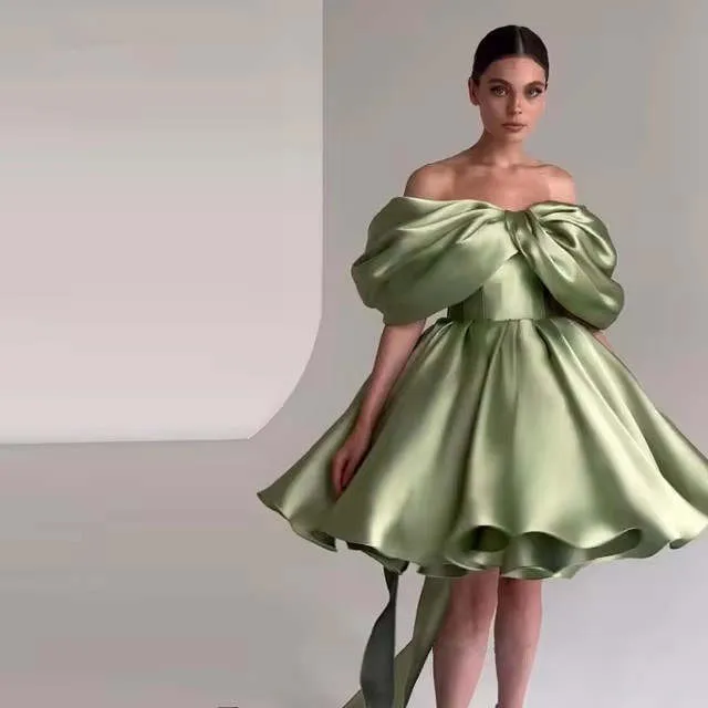 Arabic Puffy Sleeves Homecoming Dresses Knee Length Short Prom Formal Party Gowns Off The Shoulder Cocktail Evening Wear Custom Made