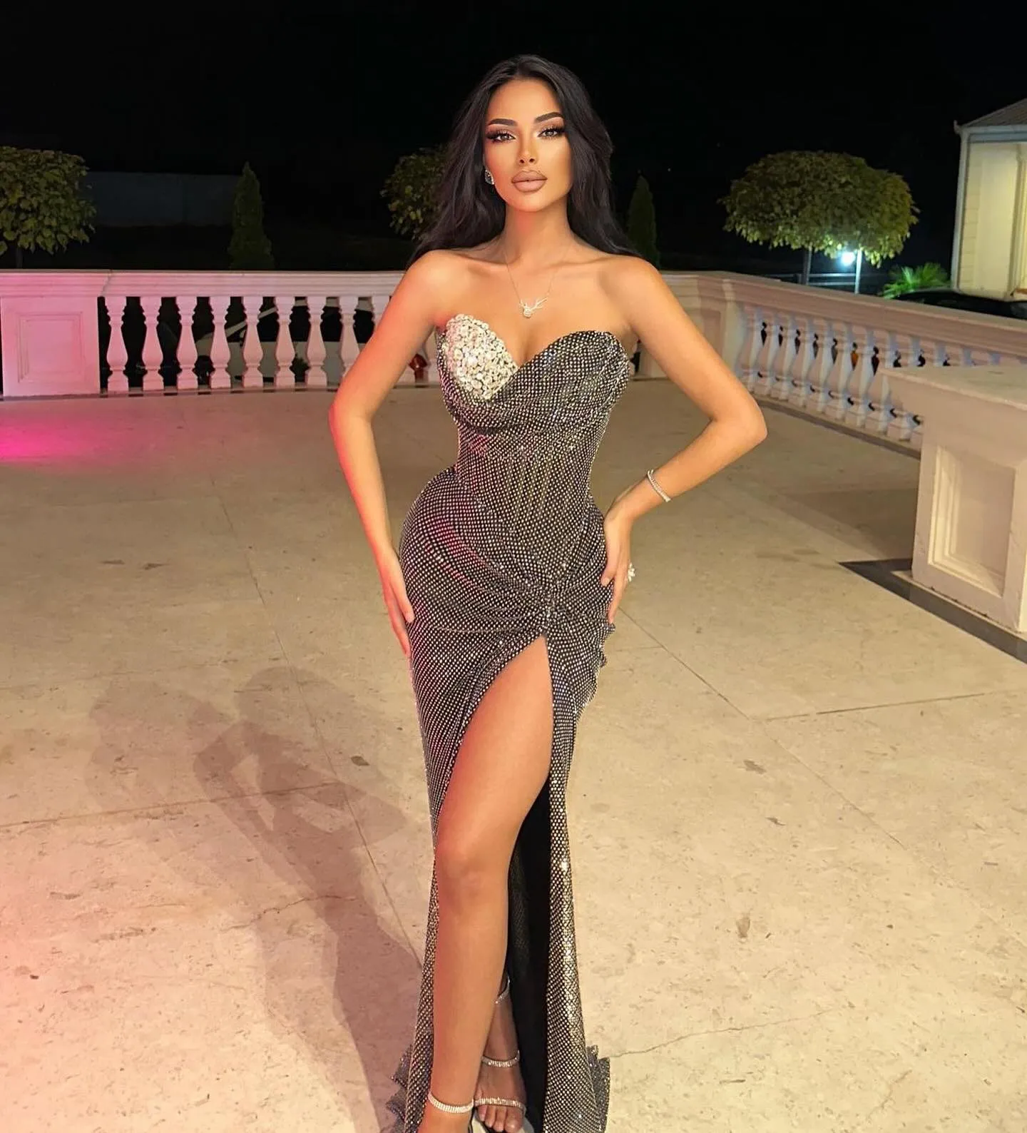 Elegant Black Mermaid Prom Dress: Sparkly Beaded Sweetheart Evening Gown with Thigh Split for Special Occasions